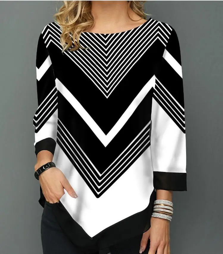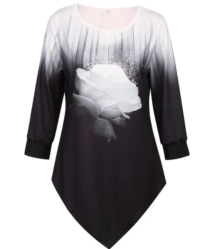 Buy Women Shirt Spring Autumn Printing O-neck Blouse Long Sleeve Casual Hem Irregularity Female Fashion