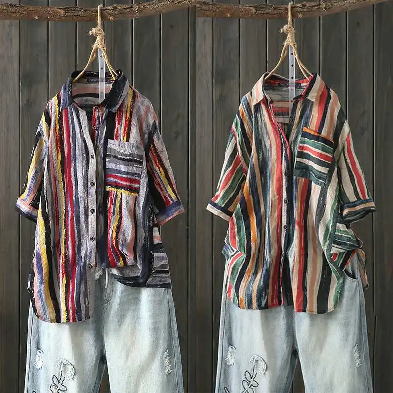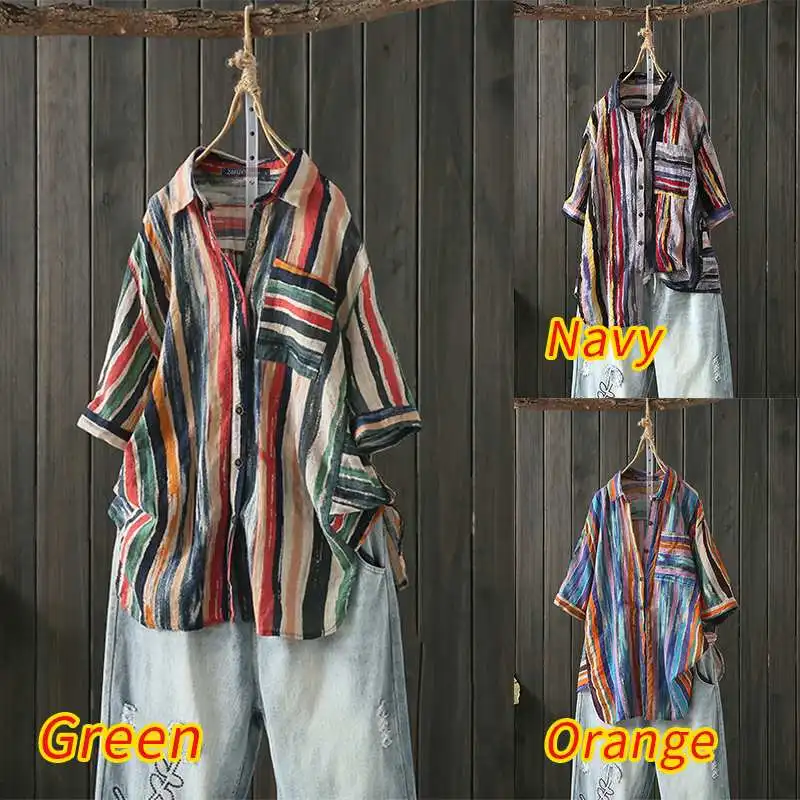 If you search this product, i propose you to take this excelent and best products. I hope ZANZEA Women Vintage Striped Blouse Summer Lapel Neck Short Sleeve Shirt Femme Robe Buttons Down Bl suitable for your needs.
