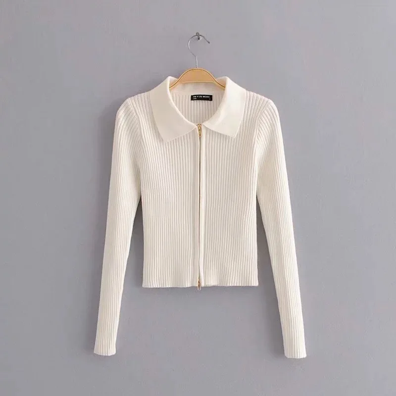 Best 2019 Women Sexy Turn-down Collar Double Head Zipper Cropped Cardigan Sweater Vintage Knitted Expose
