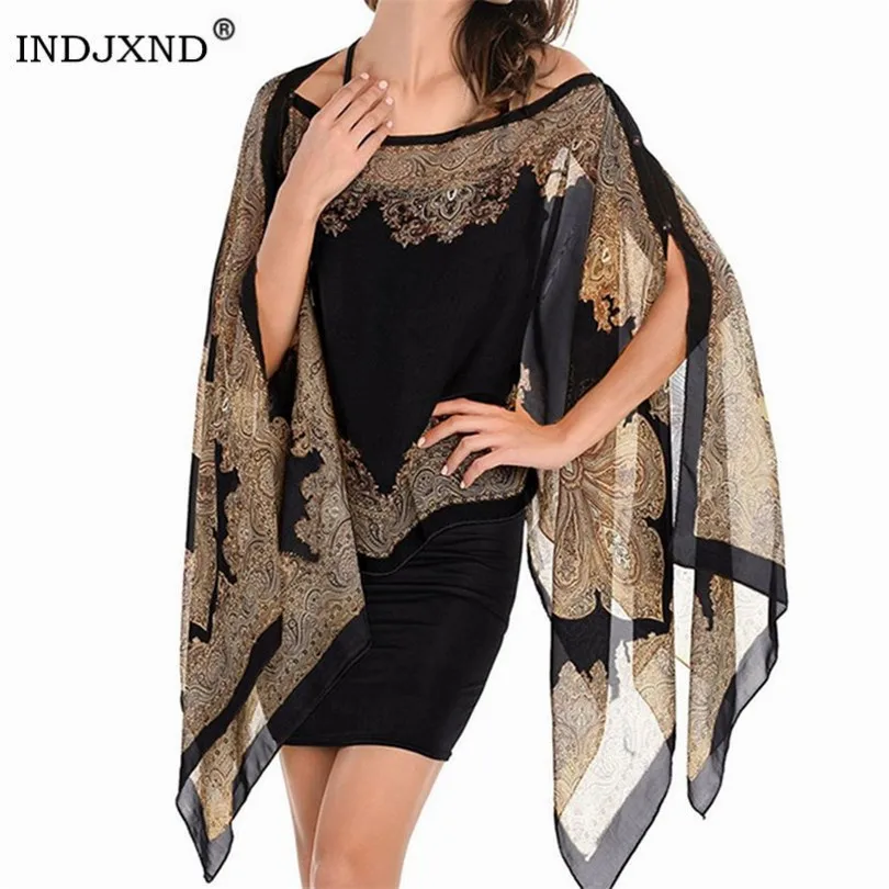 Best Boho Batwing Sleeve Chiffon Blouse Women Casual Floral Print Loose Kimono Shirts Big Size Beach Tun