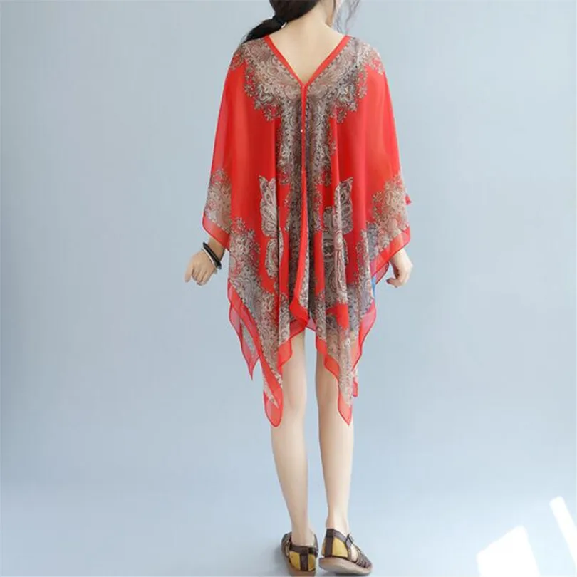 Buy Boho Batwing Sleeve Chiffon Blouse Women Casual Floral Print Loose Kimono Shirts Big Size Beach Tun