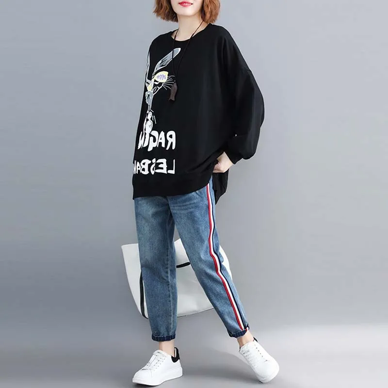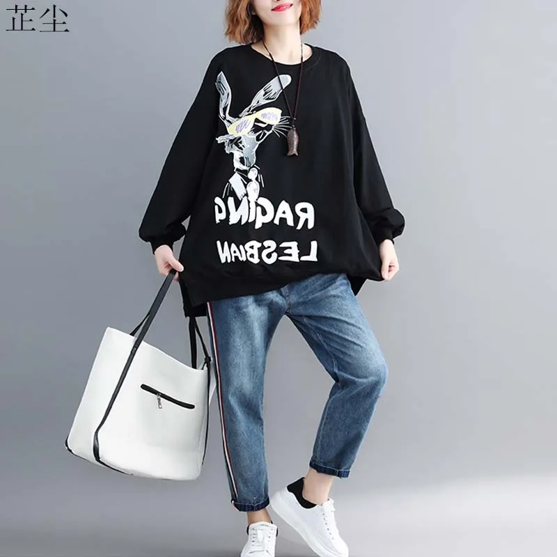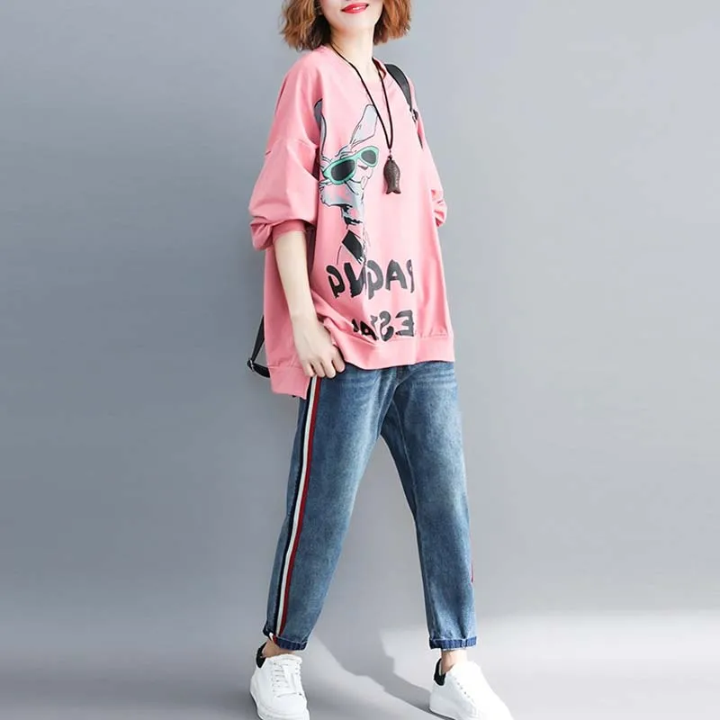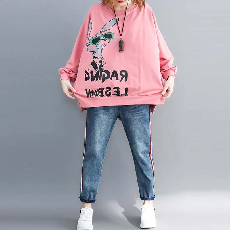 New Oversized Harajuku Kawaii Cartoon Printed Letter Hoodie Women Sweatshirt Plus Size Autumn Fashion N