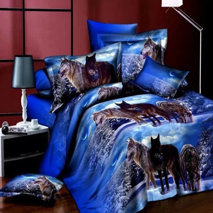 Buy New Fashion Creative Style Home Textile Blue Wolf Printing Pattern Bedding Set Europe and America Q