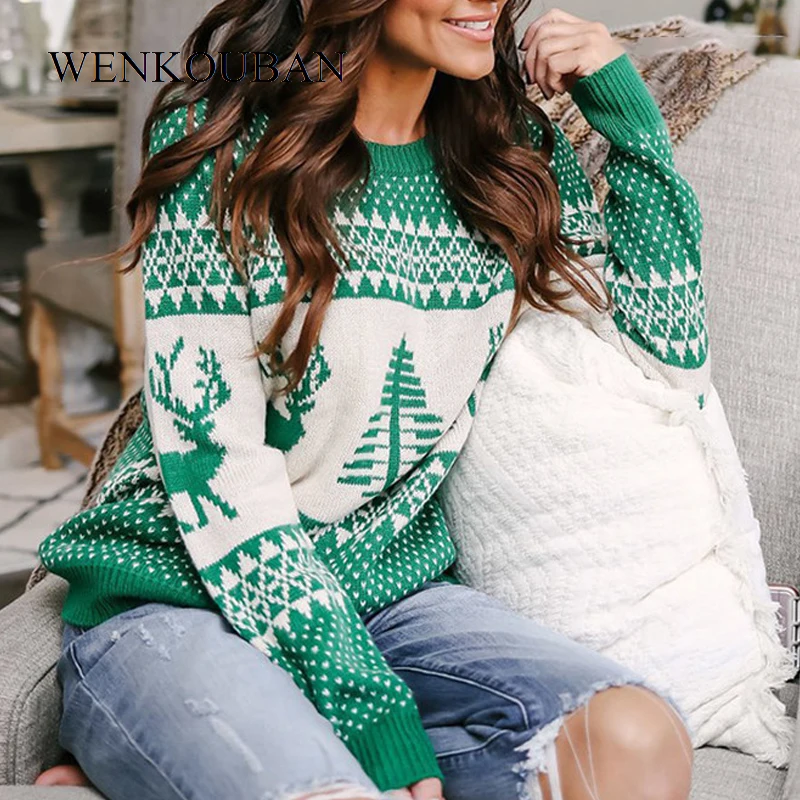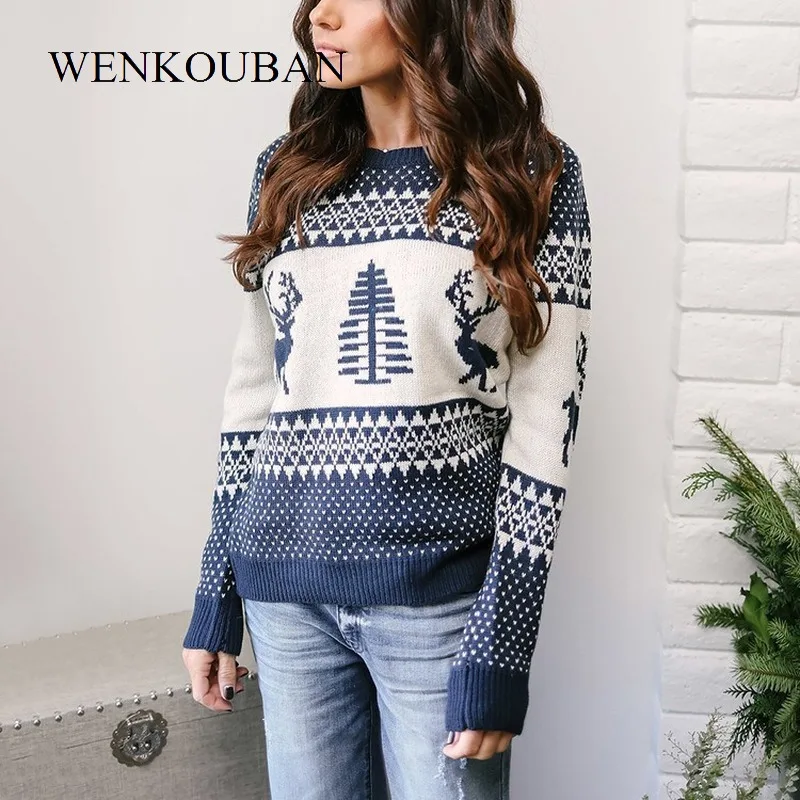 Best Women Christmas Sweater Winter Deer Printed Knitted Pullovers Sweaters Female Warm womens Clothing