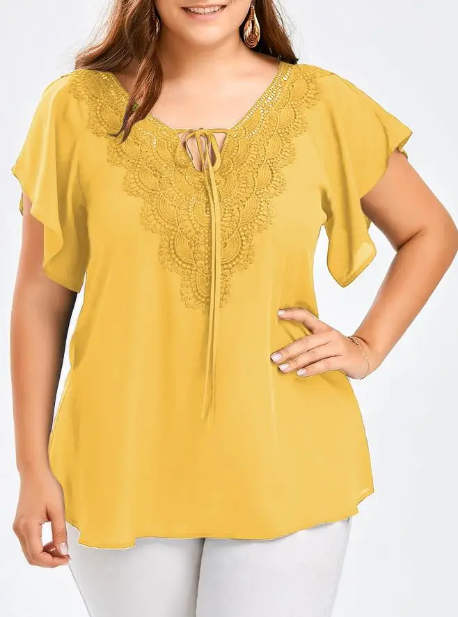 Best 2019 Summer Chiffon Tops Women Blouses Vintage Lace Crochet Casual Ruffles Flare Large Elegant Loos