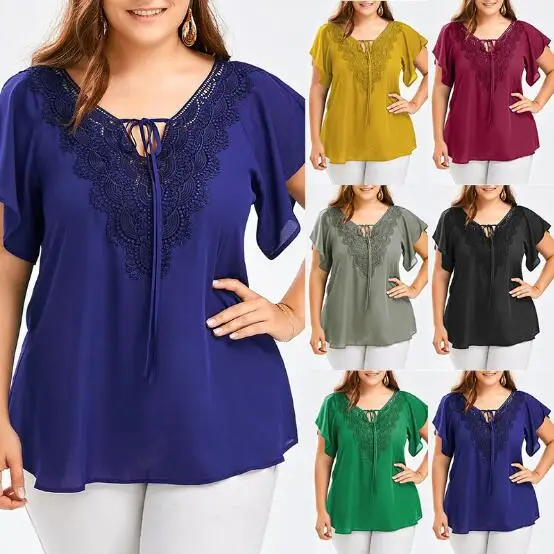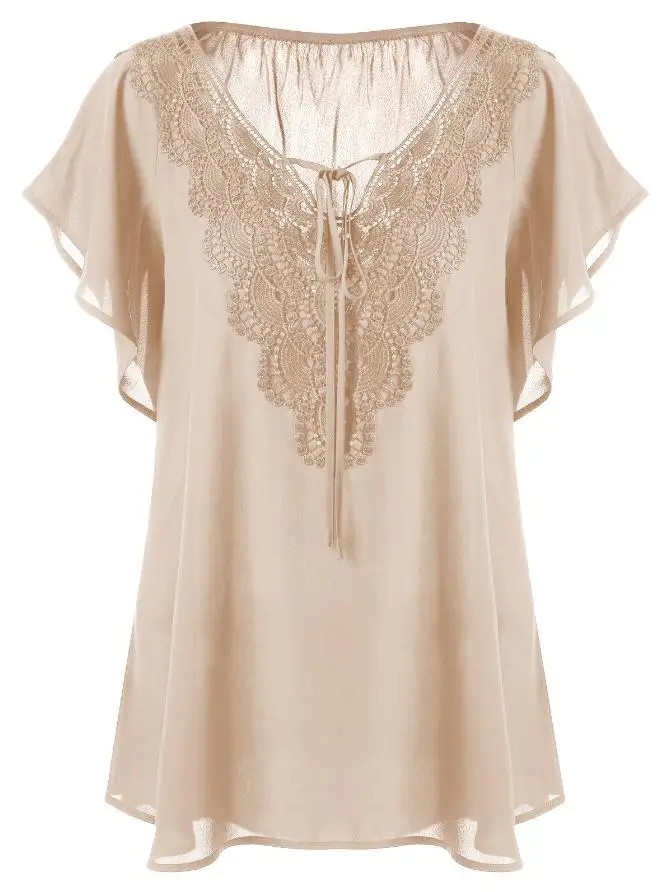 New 2019 Summer Chiffon Tops Women Blouses Vintage Lace Crochet Casual Ruffles Flare Large Elegant Loos