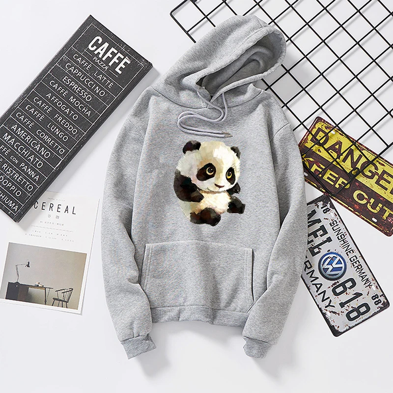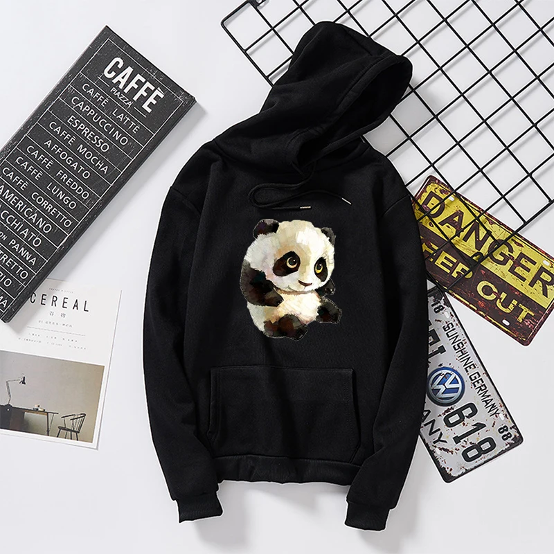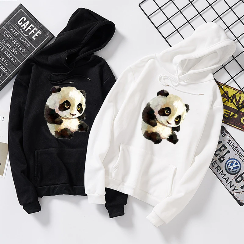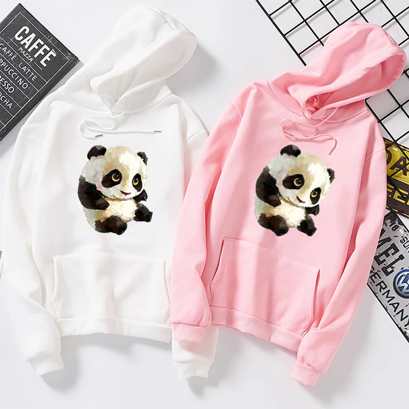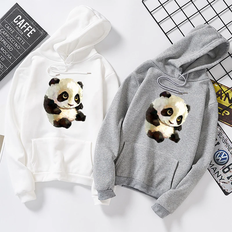 Promo Autumn Cute Panda Print Hoodies Women Cartoon Long Sleeve Sweatshirt White Fashion Pattern Pullover