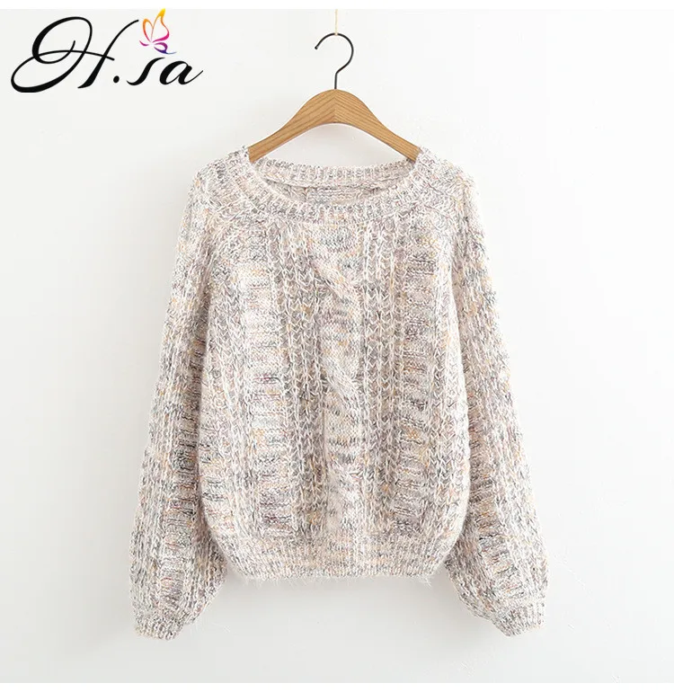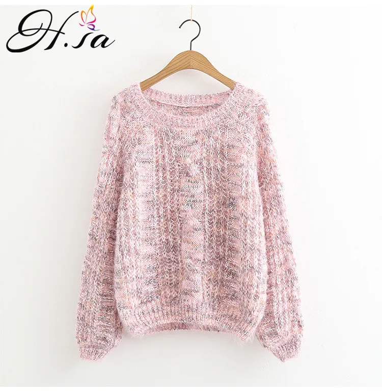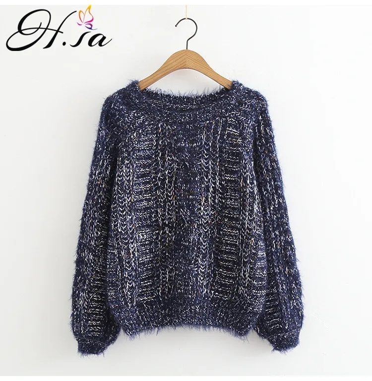 New H.SA 2018 Autumn Women Pullover Sweaters Oneck Latern Sleeve Mohair Pull Jumpers Twist High Waist P