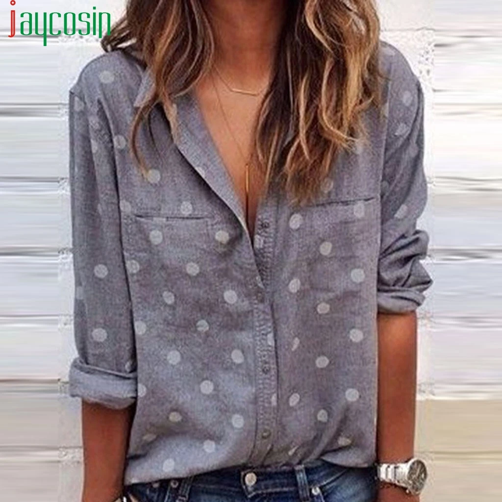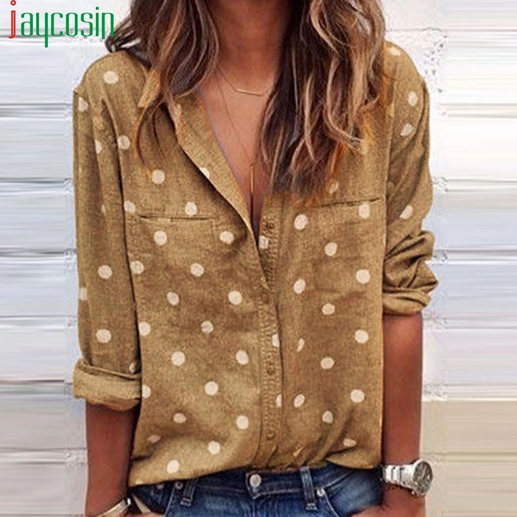 Best Women blouse Vantage dot print Shirts plus size loose long sleeve casual fashion Ladies Tops lapel