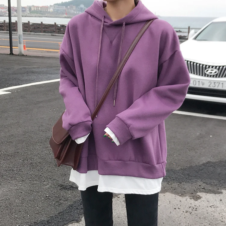 Buy 8 Color New Autumn Tops Women Sweatshirt Preppy Style Fake Two-piece Stitching Hoodies Long Sleeve