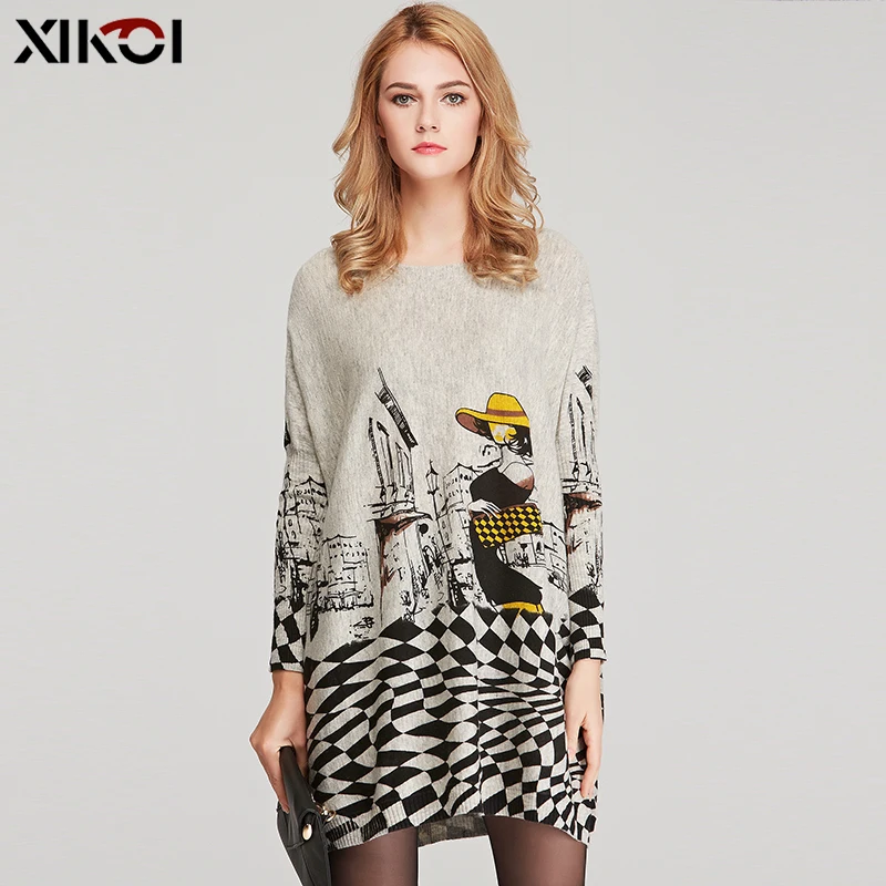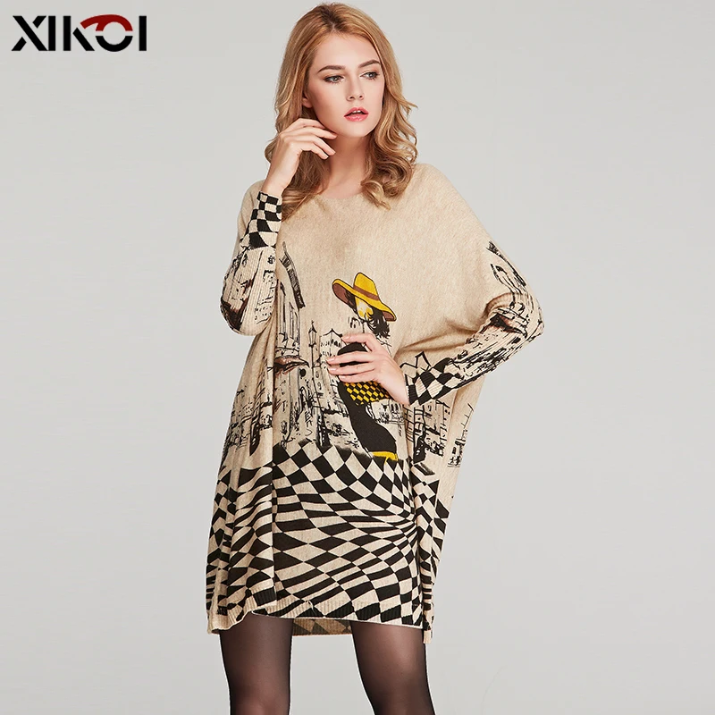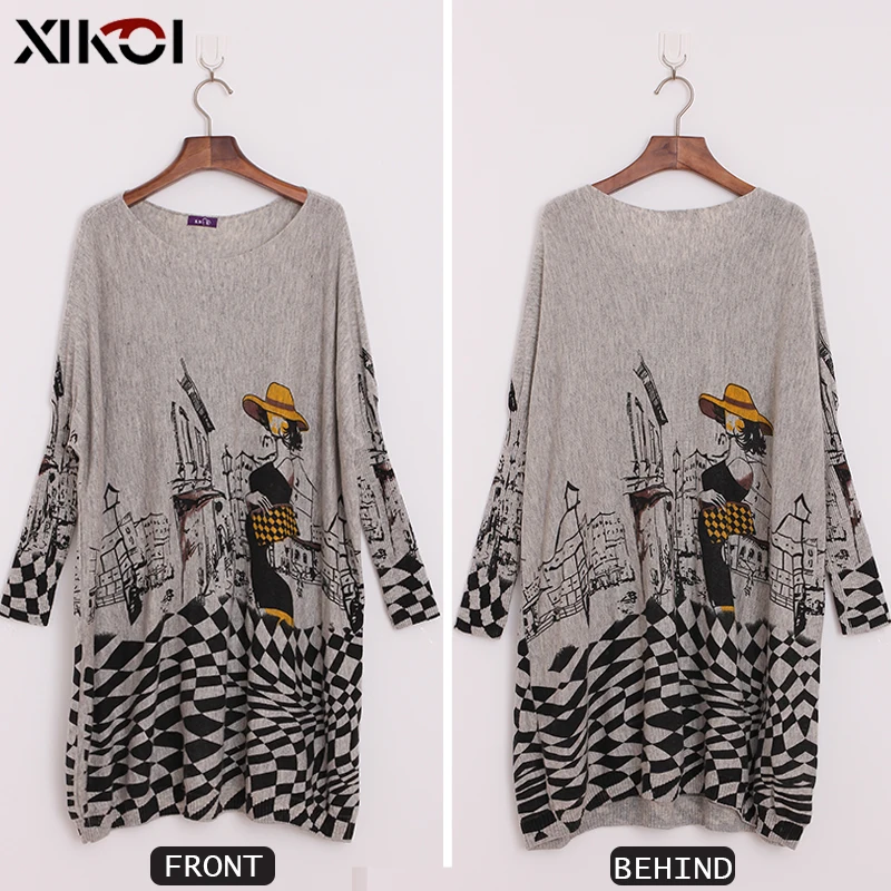 Promo XIKOI Spring Clothes Oversized Winter Sweaters For Women Knitted Print Long Wool Pullovers Pull Fem